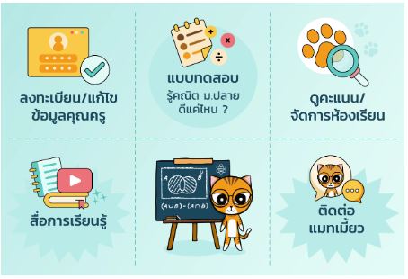 - ระบบจัดการห้องเรียน ครูที่ลงทะเบียนกับ MathMeow สามารถสร้างลิงก์ห้องเรียนของตนเอง สำหรับส่งให้กับนักเรียนในห้อง เพื่อใช้ในการติดตามผลการเรียนรู้ของนักเรียน และสามารถนำ MathMeow ไปใช้ประกอบแผนการสอนหรือใช้เป็นสื่อเสริมได้ตามความเหมาะสม