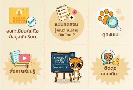 - ระบบแบบทดสอบ เพื่อเสริมสร้างการเรียนรู้รายวิชาคณิตศาสตร์พื้นฐาน ระดับมัธยมศึกษาตอนปลาย สอดคล้องหลักสูตรแกนกลางการศึกษาขั้นพื้นฐาน พุทธศักราช 2551 (ฉบับปรับปรุง พ.ศ. 2560) นักเรียนทดสอบความรู้ได้ทุกที่ ทุกเวลา รู้ผลคะแนนทันที นอกจากนี้ สามารถลงทะเบียนกับ MathMeow เพื่อใช้งานควบคู่กับระบบแสดงคะแนน ในการดูอันดับคะแนนของนักเรียนที่อยู่ในห้องเรียนเดียวกัน และดูคะแนนรายหัวข้อของตนเอง