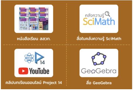 - แหล่งรวบรวมสื่อประกอบการเรียนรู้ รายวิชาคณิตศาสตร์ ระดับมัธยมศึกษาตอนปลาย ซึ่งรวบรวมลิงก์ไปยังเว็บไซต์สั่งซื้อหนังสือเรียน สื่อประกอบการเรียนรู้คณิตศาสตร์ในคลังความรู้ SciMath วีดิทัศน์บทเรียนออนไลน์จากโครงการสอนออนไลน์ Project 14 และสื่อ GeoGebra ประกอบการเรียนรู้คณิตศาสตร์ รวมทั้งหลักสูตรและคู่มือครูสำหรับคุณครู