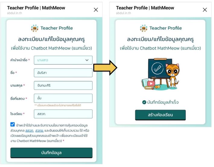 ในกรณีที่ต้องการใช้ระบบจัดการห้องเรียนและระบบแสดงคะแนนของ MathMeow สามารถลงทะเบียนเพิ่มเติมได้โดย