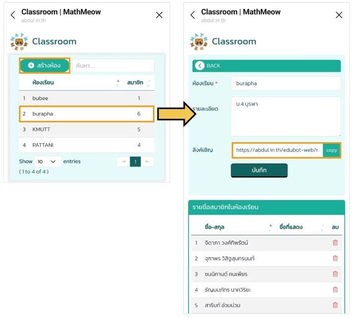 - คุณครูสามารถลบสมาชิกออกจากห้องเรียนของตนเอง
